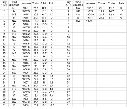 Readings taken by Luke Howard at Plaistow show the build up of heat to the 14th. The series on the right, taken in Wanstead, around 3 miles to the north-east, will be added to by the author as July unfolds