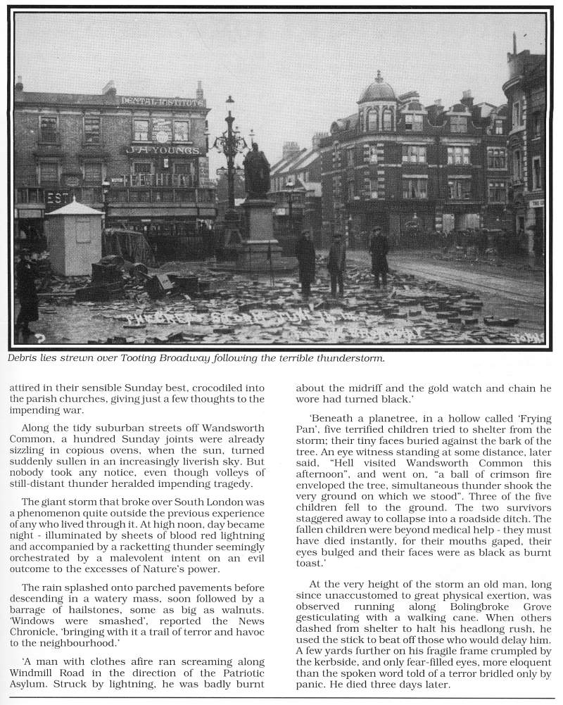 What is fascinating is that a similar thunderstorm that left seven dead in Valentines Park, Ilford, 75 years ago this August, also happened about two weeks before Prime Minister Neville Chamberlain announced on September 3, 1939, that Britain was at war with Germany.