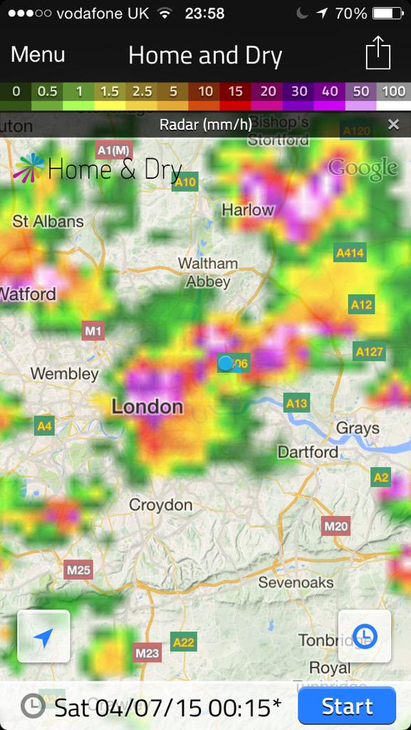 Looking further afield around London an observer in Blackheath reported an hour to 90 minutes of ‘roaringly good storminess’ that brought a house party to an abrupt end. He counted 15 flashes of lightning a minute, lots of CC but a few CGs too, including one close as the storm kicked off.