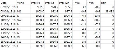 Howard’s theory of the day was that such extremes didn’t occur during long continued frosts but rather at an interval of one winter after such a season. He mentions the frost of 1794-95, which lasted 44 days, immediately before which the thermometer fell to -2F. The following year a low temperature of -6.5F was recorded. The year 1816 followed the cold winter of 1813/14 – the same pattern, so Howard was prepared for the night of February 9th 1816.