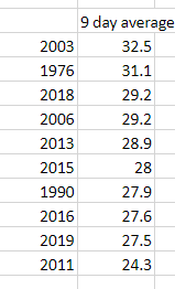 9 day chart August 2, 2019 159 × 262 July 2019: a new Tmax record Share this: Click to share on X (Opens in new window) X Click to share on Facebook (Opens in new window) Facebook Click to email a link to a friend (Opens in new window) Email Click to share on LinkedIn (Opens in new window) LinkedIn Click to print (Opens in new window) Print Like Loading...
