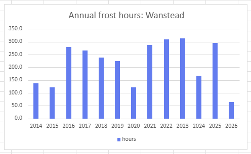 The opening week or so of 2026 has already seen 30 per cent of frost hours recorded locally in an average year.