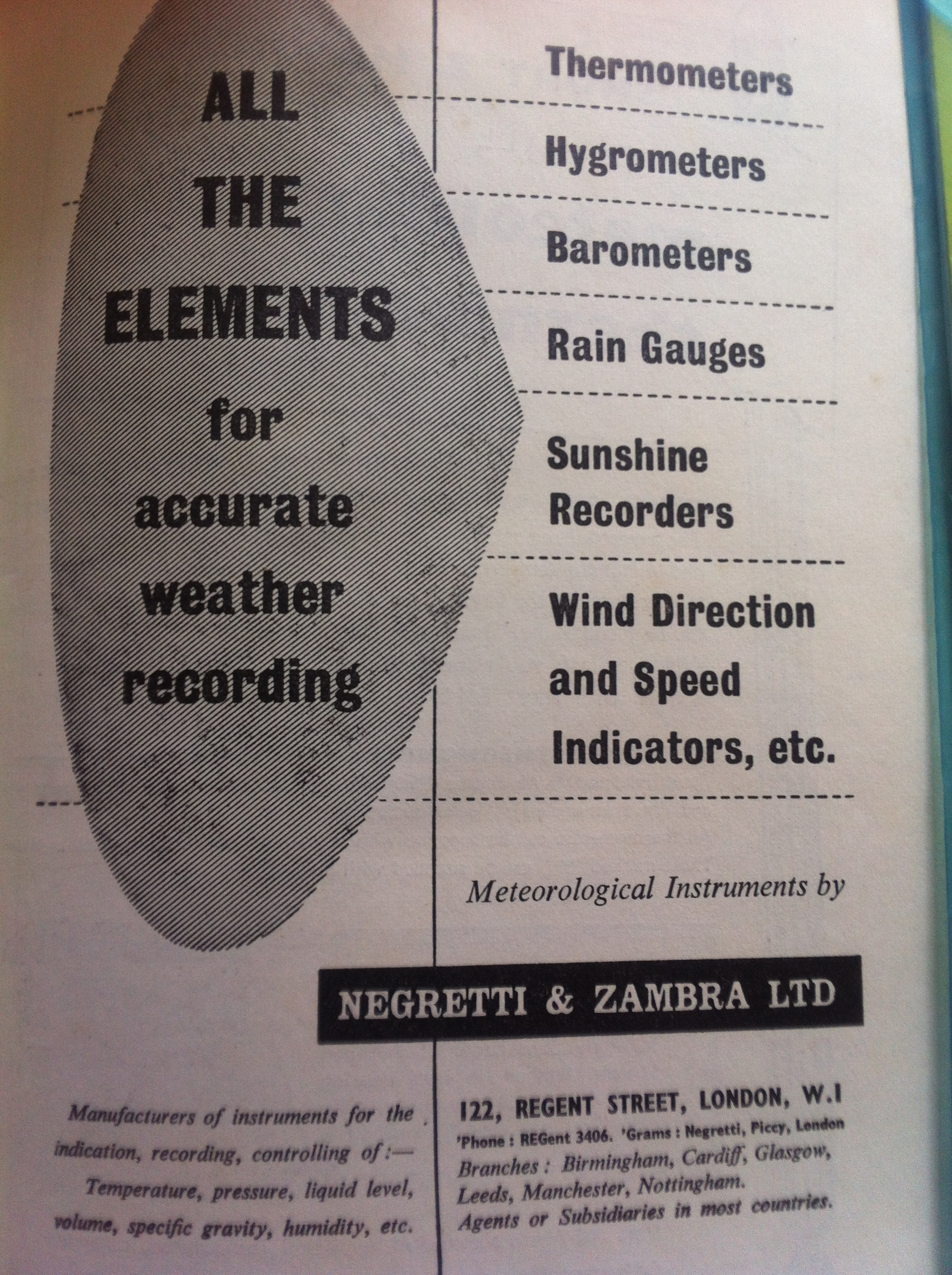 “I was getting tea, coffee and buns from a Greek cafe in Soho’s Wardor Street for the office staff, collecting the mail and using the franking machine and last but not least the holy of holy’ climbing to the shop roof top and collecting the charts from the sunshine glass ball recorder, the rain gauge, barograph and the hygrometer box. You see it was common in those days for people to phone N&Z to enquire what these readings had been for the past day or so, a typical quality N&Z service.” A full account of his time with the company can be found here.
