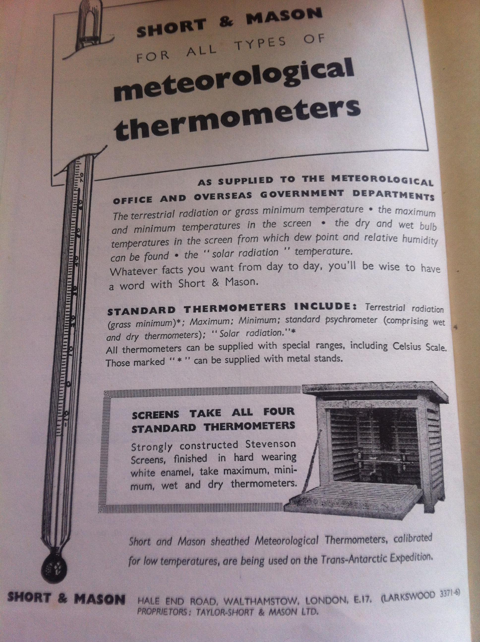 In 1958 the business moved to Wood Street, Walthamstow, where it continued to trade until a merger in 1969 with Taylor Instrument Companies, of Leighton Buzzard, Beds. An account of somebody with experience of working for Short and Mason can be found here.
