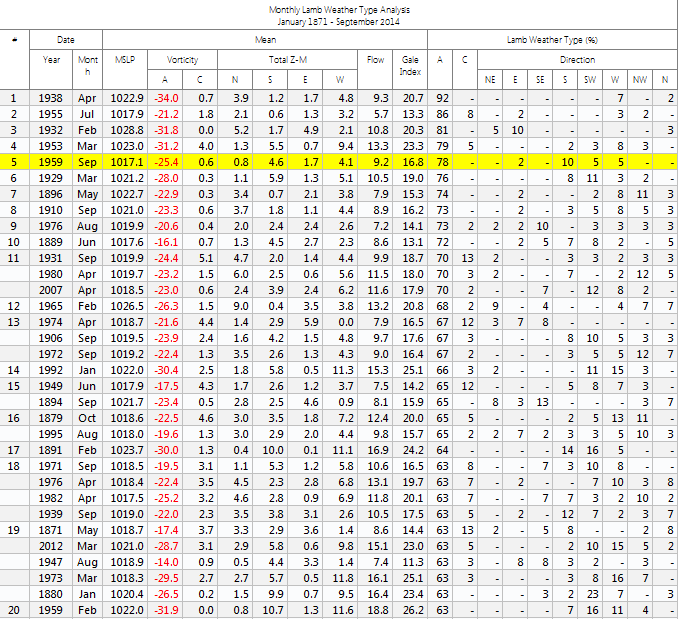 Most Anticyclonic Lamb Weather Types (1871-2014) September 30, 2014 678 × 619 Most Anticyclonic Lamb Weather Types (1871-2014) Share this: Click to share on X (Opens in new window) X Click to share on Facebook (Opens in new window) Facebook Click to email a link to a friend (Opens in new window) Email Click to share on LinkedIn (Opens in new window) LinkedIn Click to print (Opens in new window) Print Like Loading...