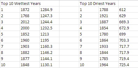 Top 10 wettest and driest years October 15, 2015 448 × 222 Top 10 wettest and driest years Share this: Share on X (Opens in new window) X Share on Facebook (Opens in new window) Facebook Email a link to a friend (Opens in new window) Email Share on LinkedIn (Opens in new window) LinkedIn Print (Opens in new window) Print Like Loading...